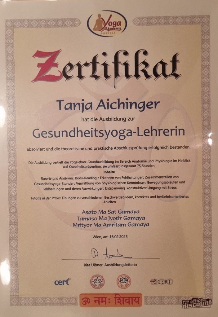 Seit Februar 2025 bin ich geprüfte Gesundheits-Yoga Trainerin!